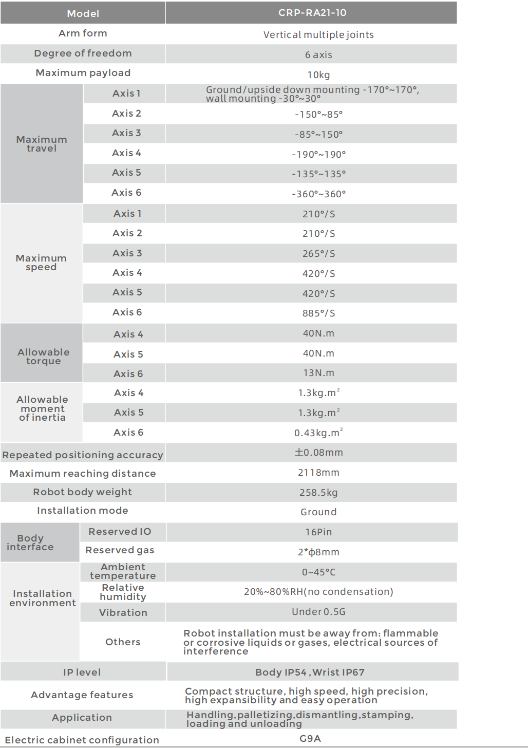 The overall structure of the robot is highly compact, light weight, more lightweight and applicable, especially the wrist is smaller to meet more scenes.